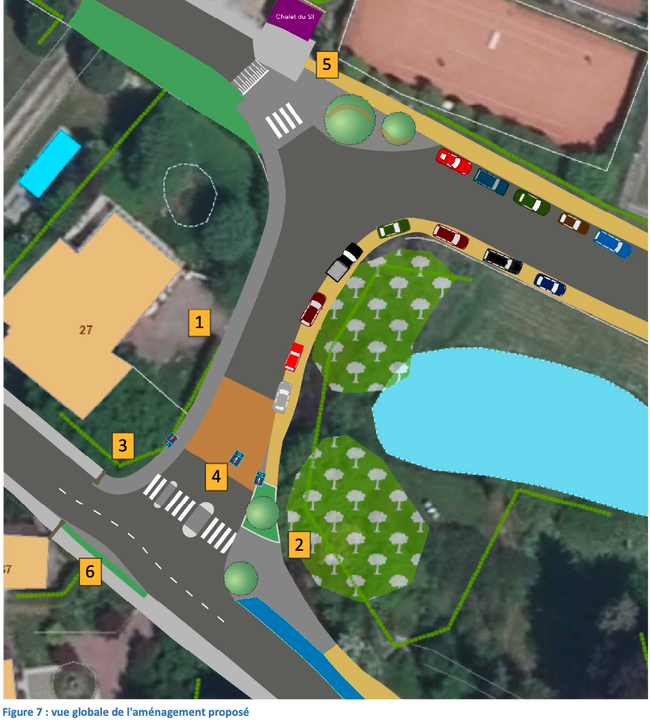 Nous avons notamment proposé d’empêcher le stationnement sur certains accotements en installant des potelets, afin de sécuriser les cheminements piétons et de garantir le respect de la zone cyclable.